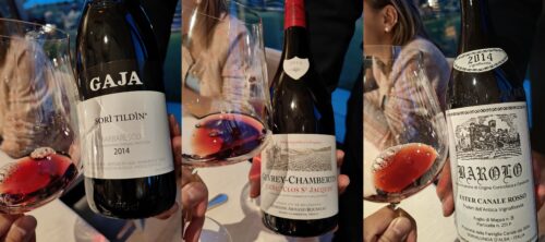 記得七年前我與 Annalisa 和 Elvio 在這裏晚飯時,比試了 2011 的 Gaja 與 Armand Rousseau,今天多了四位,除了 Gaja 與 Rousseau,我加了一支 Giovanni Rosso 的 Vigna Rionda,三支都是 2014 年的。