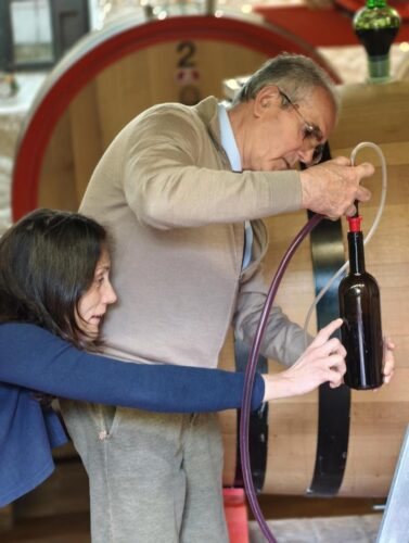 图7 Florio和Gioia,天堂庄的两代人,在斯洛维尼亚大桶旁取酒